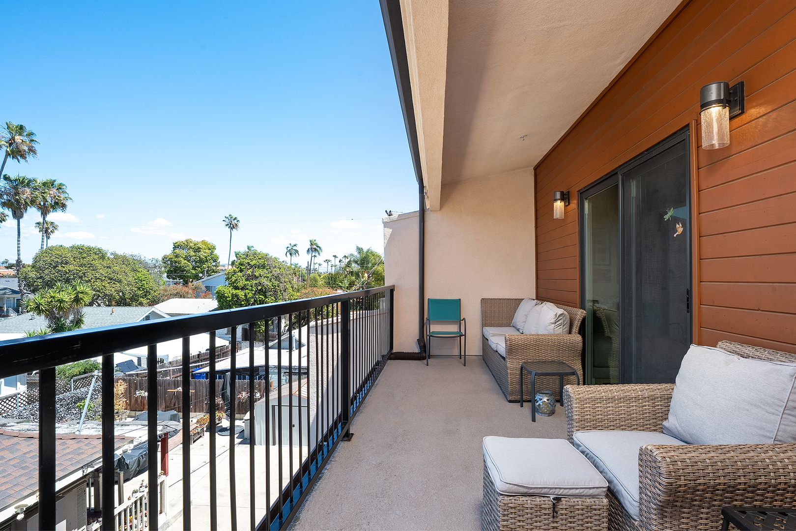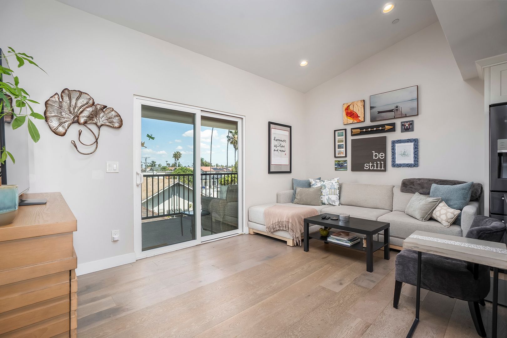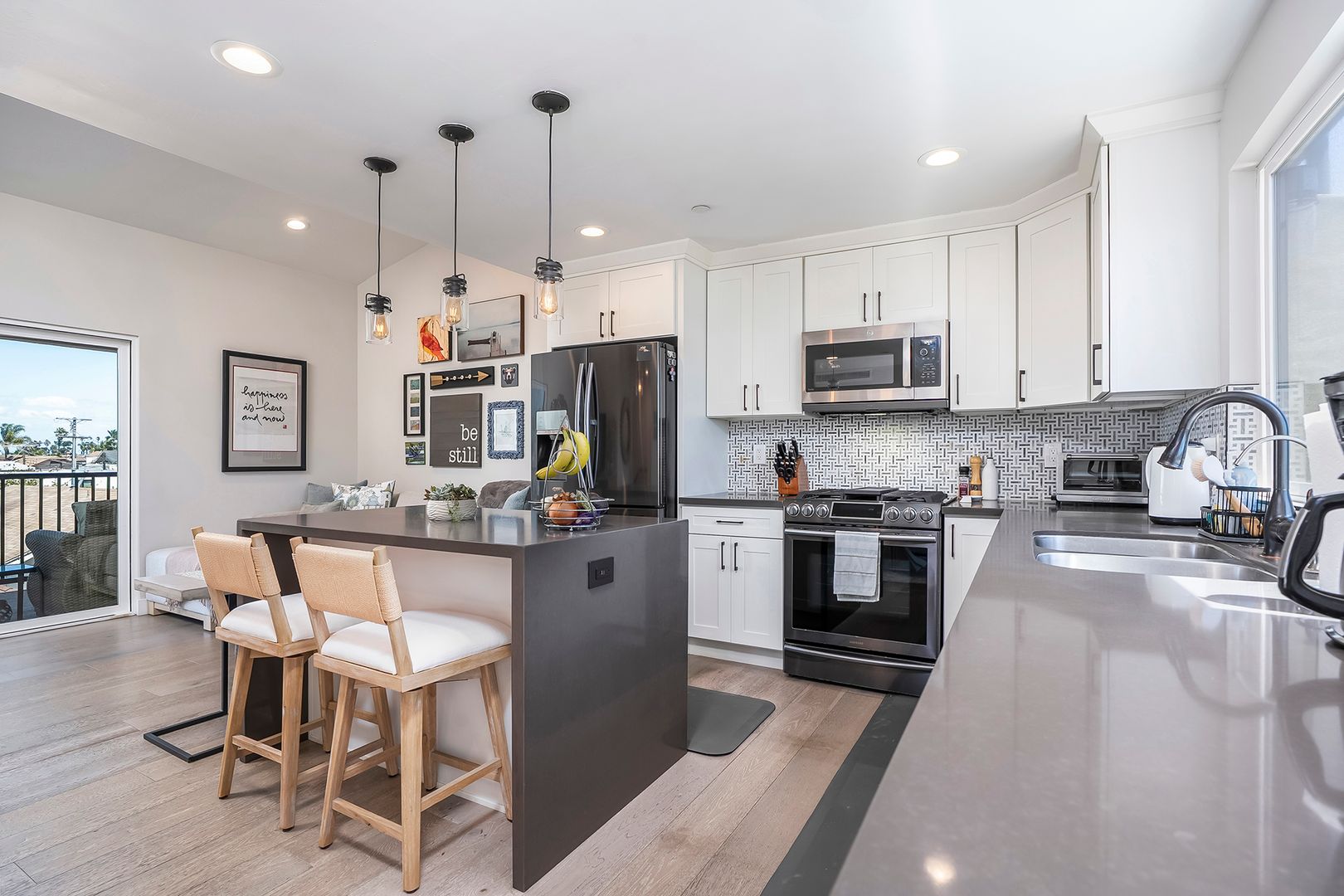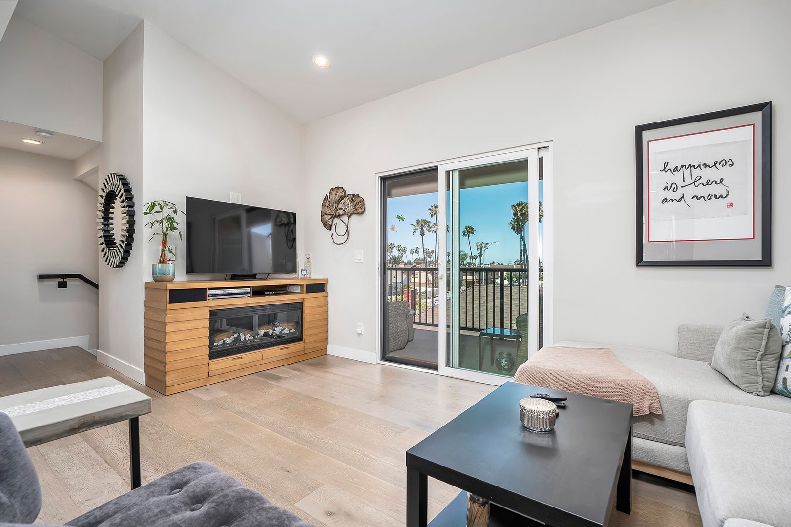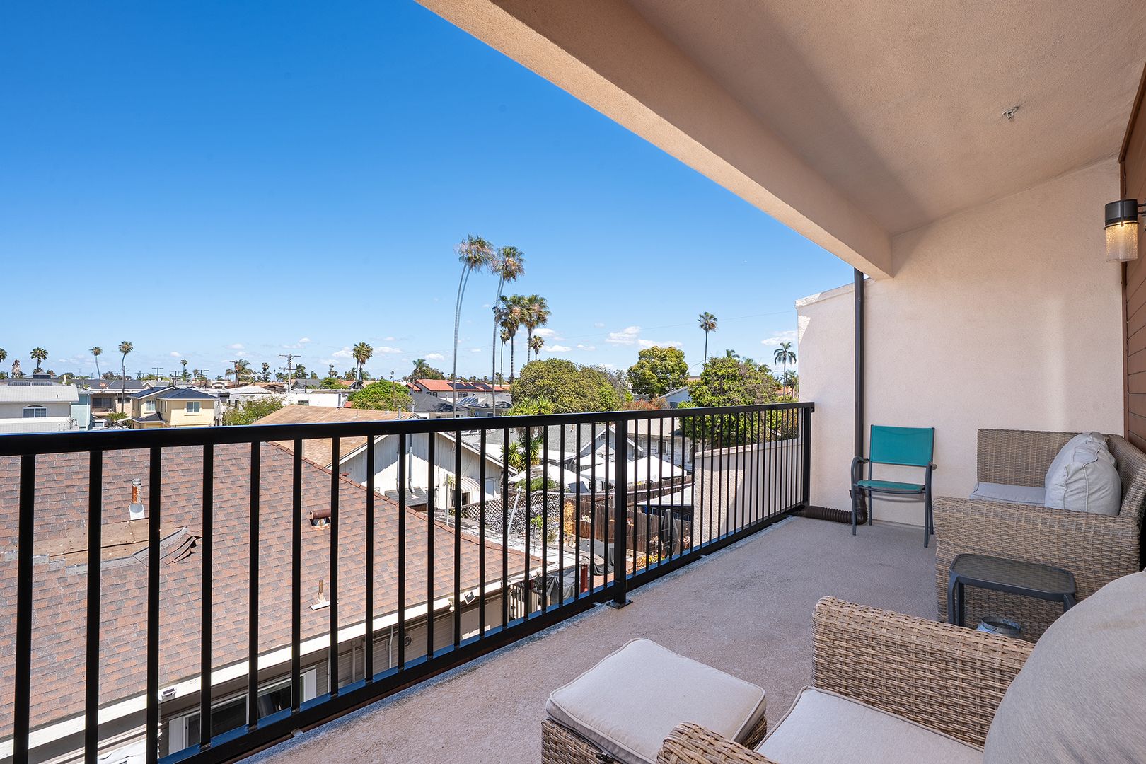 Featuring 4 well-planned levels with wood floors throughout. The entryway and garage on the bottom floor, 3 bedrooms, 2 full bathrooms, and laundry are on the 2nd floor, and the living room, kitchen, and a 1/2 bath on the 3rd floor. The 4th floor is a private rooftop balcony, the perfect spot to enjoy San Diego's beautiful weather. Featuring a built-in gas fire pit and gas barbecue grill, take in the stunning views all the way to the ocean.