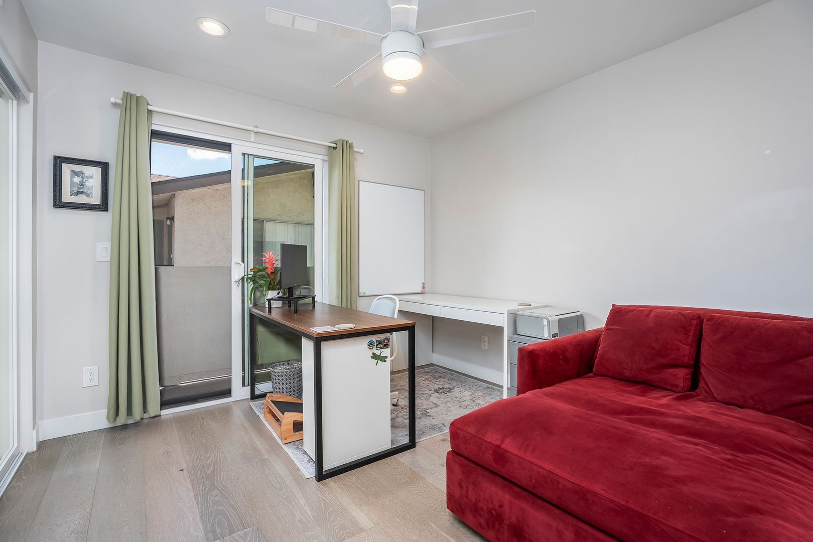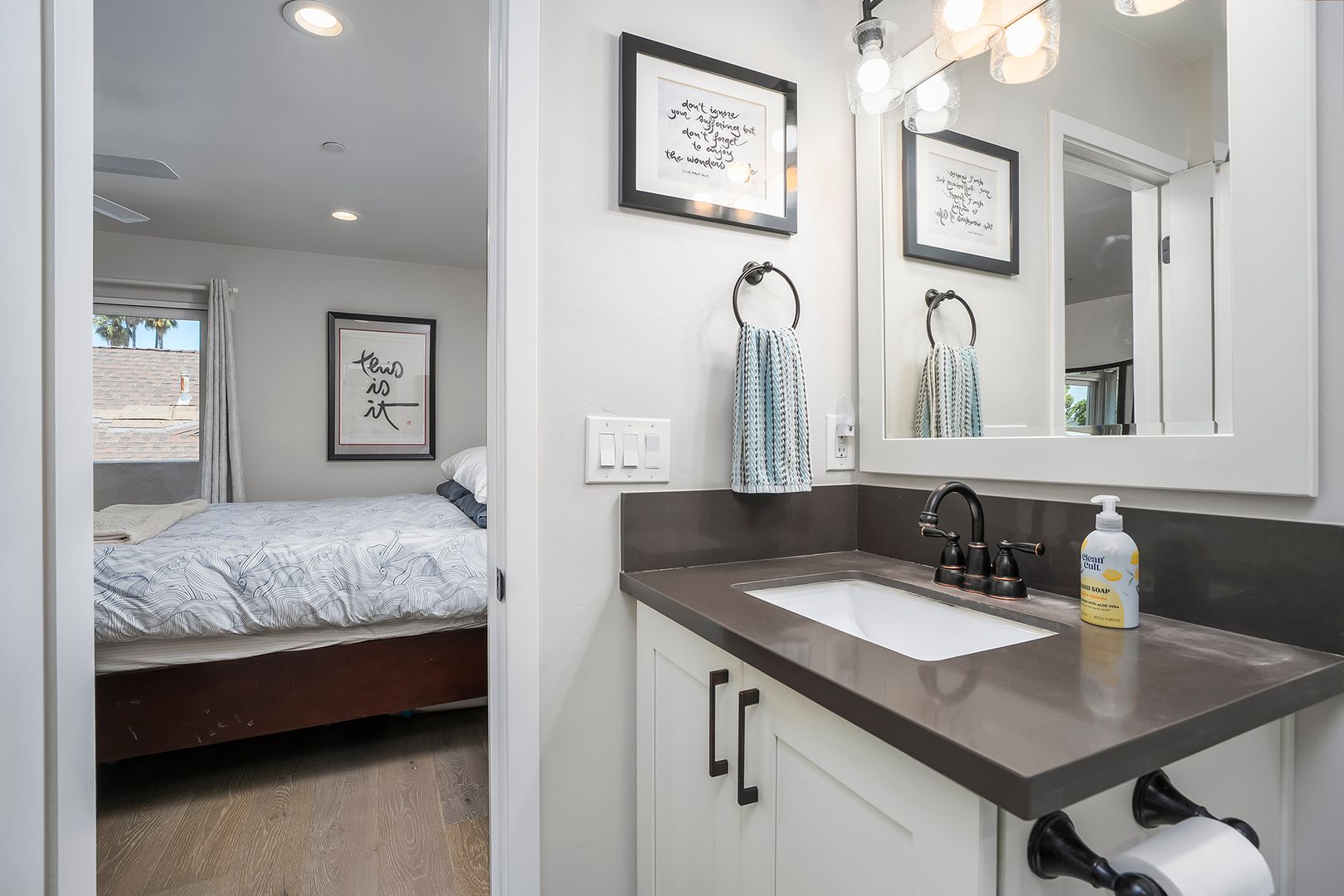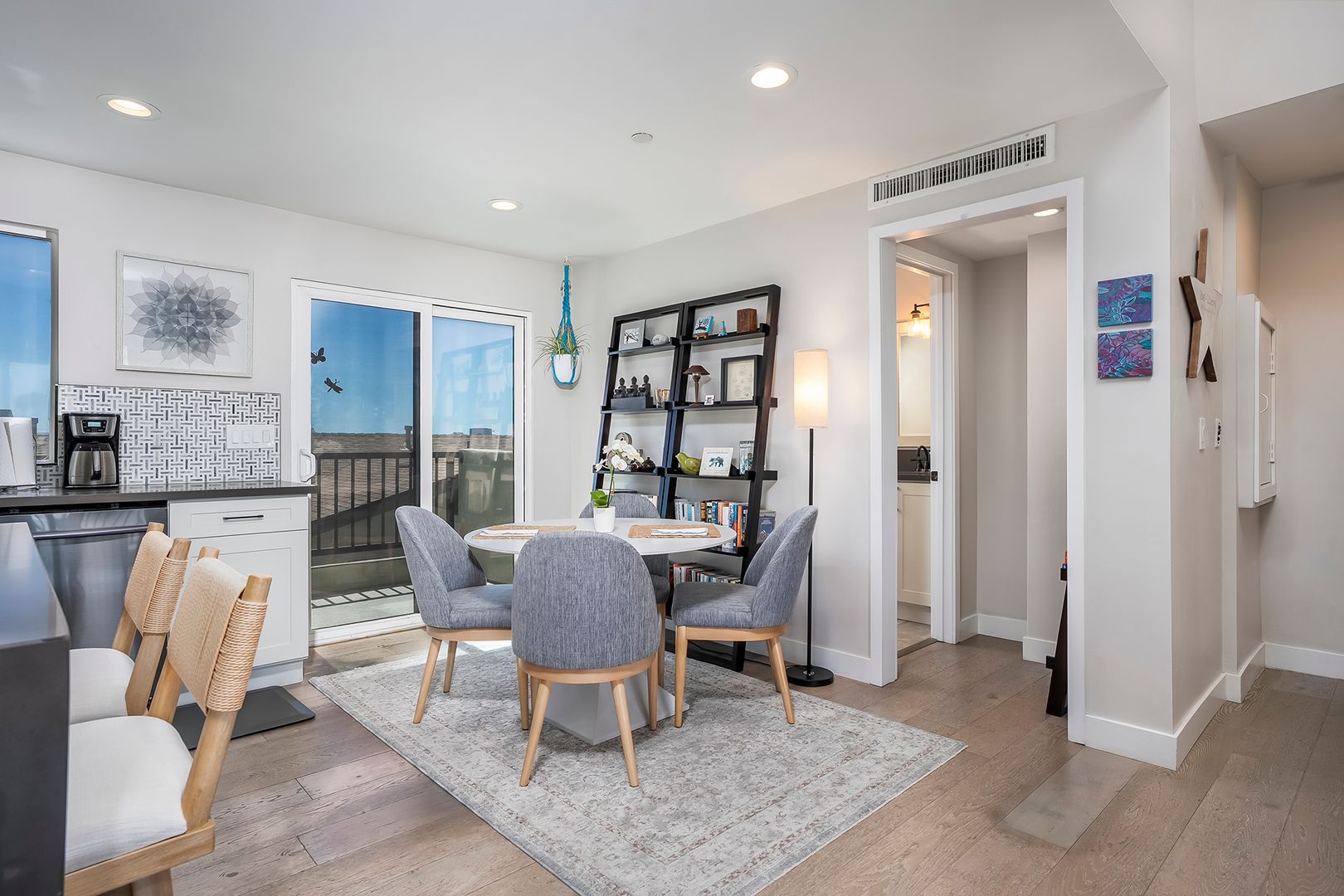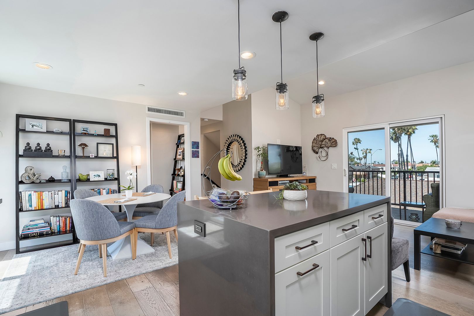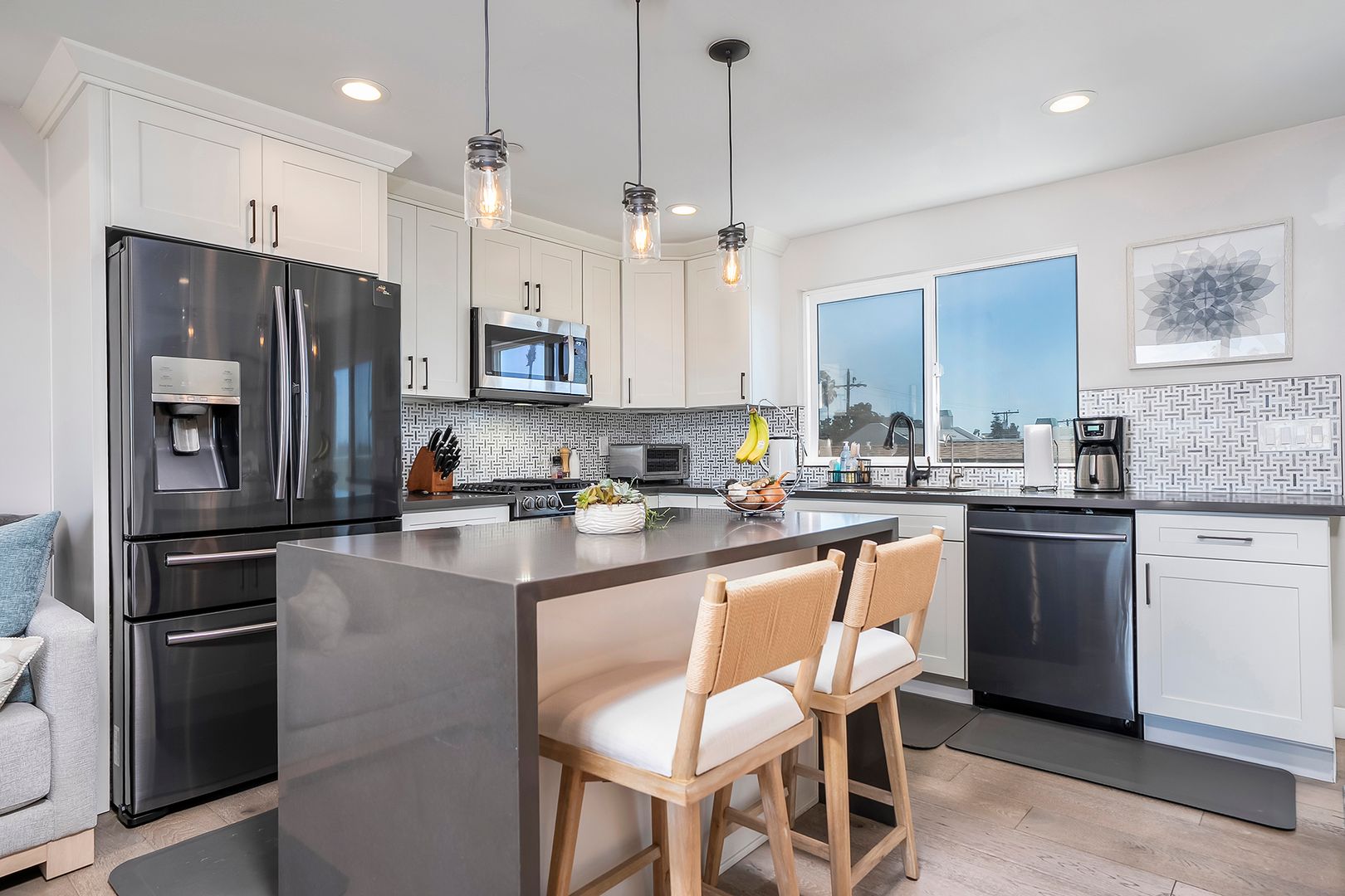 Featuring 4 well-planned levels with wood floors throughout. The entryway and garage on the bottom floor, 3 bedrooms, 2 full bathrooms, and laundry are on the 2nd floor, and the living room, kitchen, and a 1/2 bath on the 3rd floor. The 4th floor is a private rooftop balcony, the perfect spot to enjoy San Diego's beautiful weather. Featuring a built-in gas fire pit and gas barbecue grill, take in the stunning views all the way to the ocean.