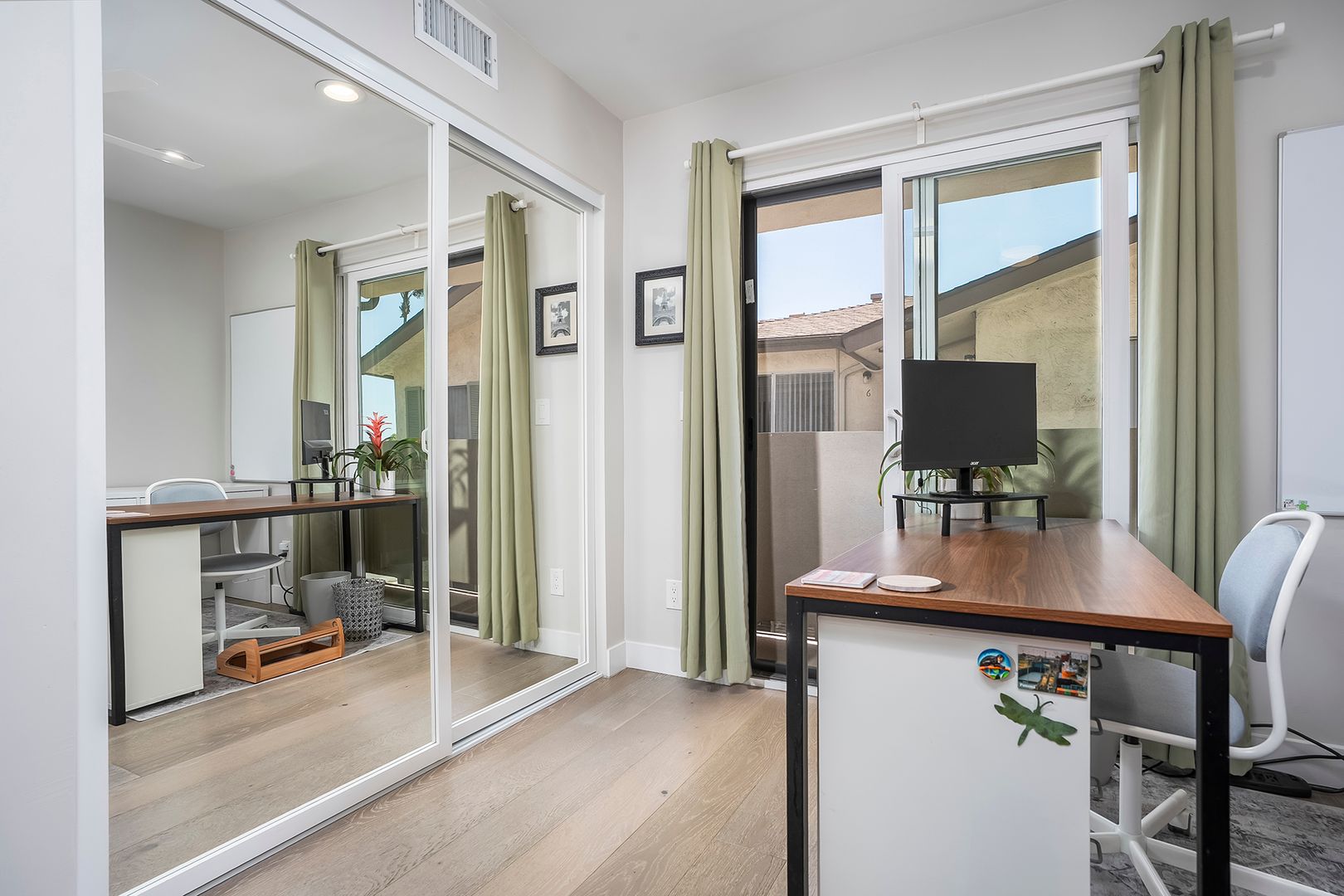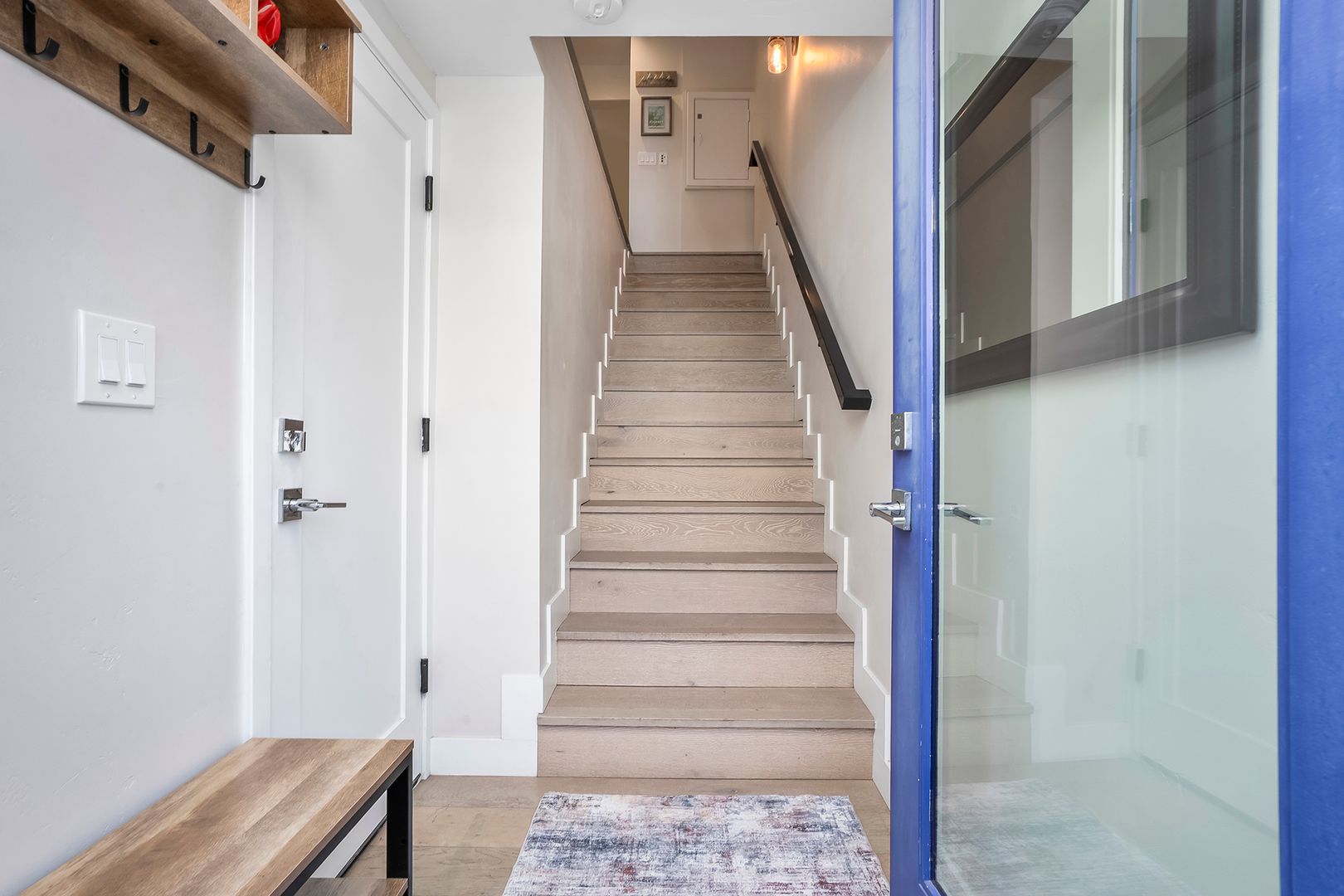 The unit has central air conditioning and central heating plus solar panels on roof to supplement the power bill. Townhome has an air gap between walls for quiet living. The other 4 units in the building are all owner-occupied. The garage will accommodate one car/SUV. Additional parking is readily available outside the garage underneath the building and on the street. Please no smoking on premises (interior or exterior of home).