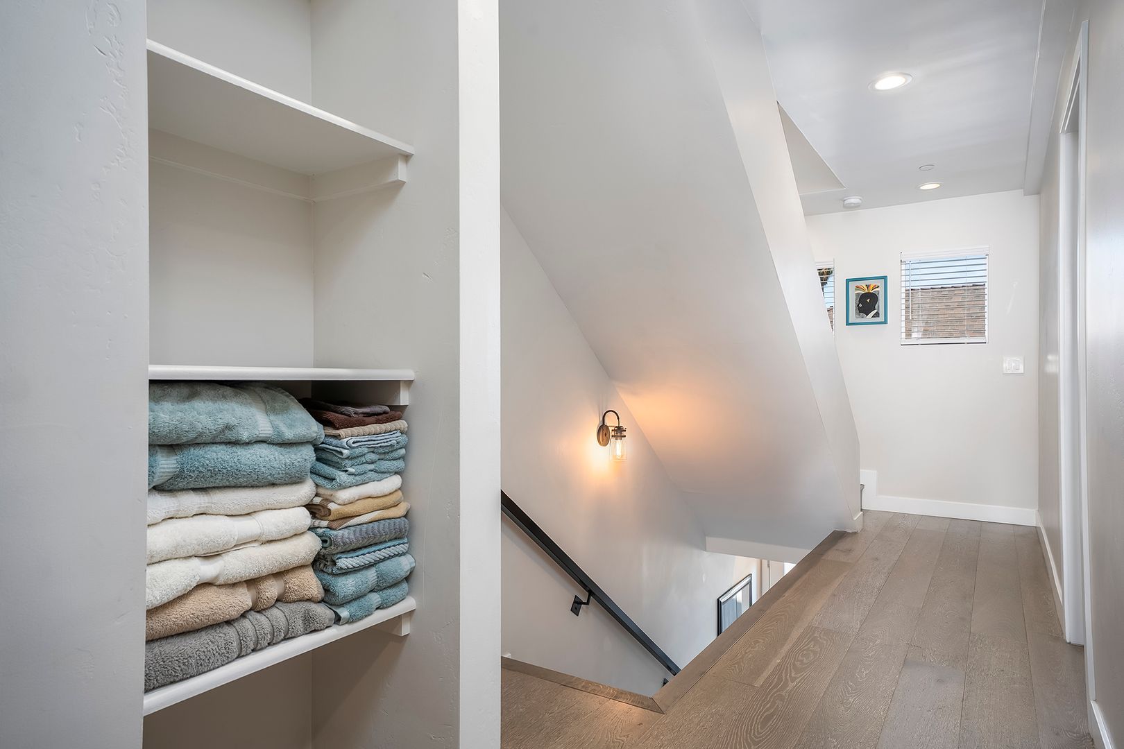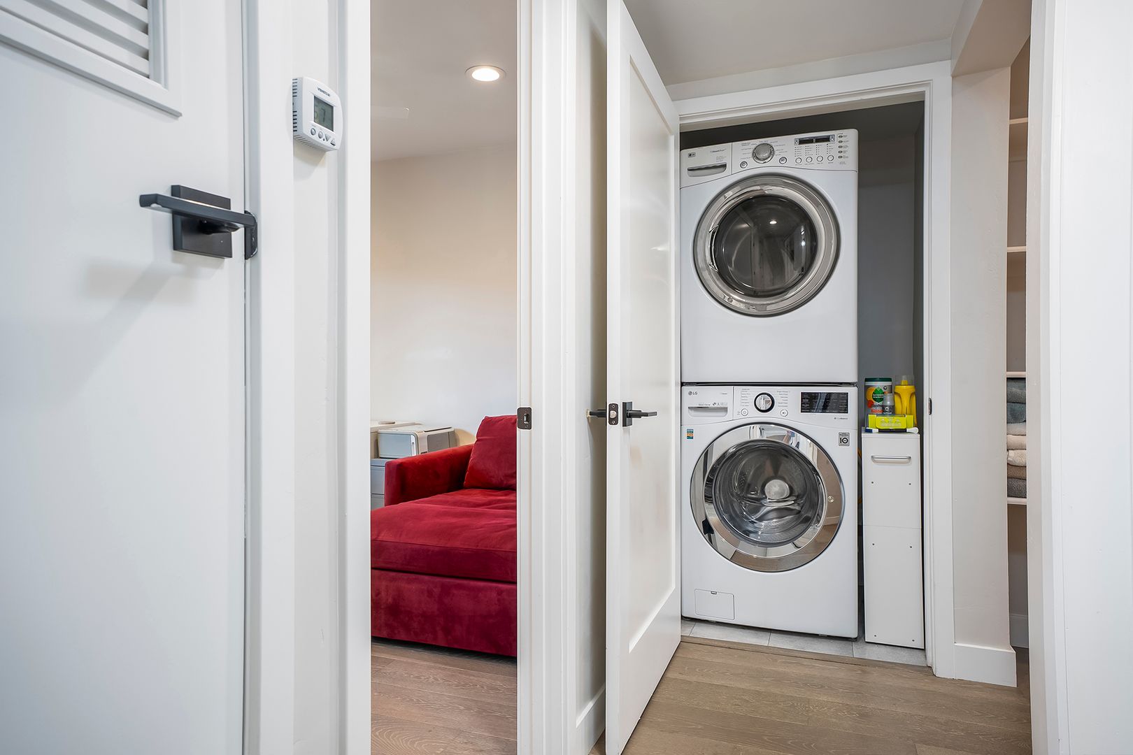 Laundry is located on the 2nd floor near bedrooms with a LG full-sized washer and gas dryer. Great storage and closet space including a walk-in closet in master bedroom. Ceiling fans are in all 3 bedrooms. Balconies outside all 3 bedrooms, kitchen, and living rooms for relaxing indoor-outdoor living. The largest balcony outside the living room is big enough for comfortable outdoor meals, entertaining, and lounging.