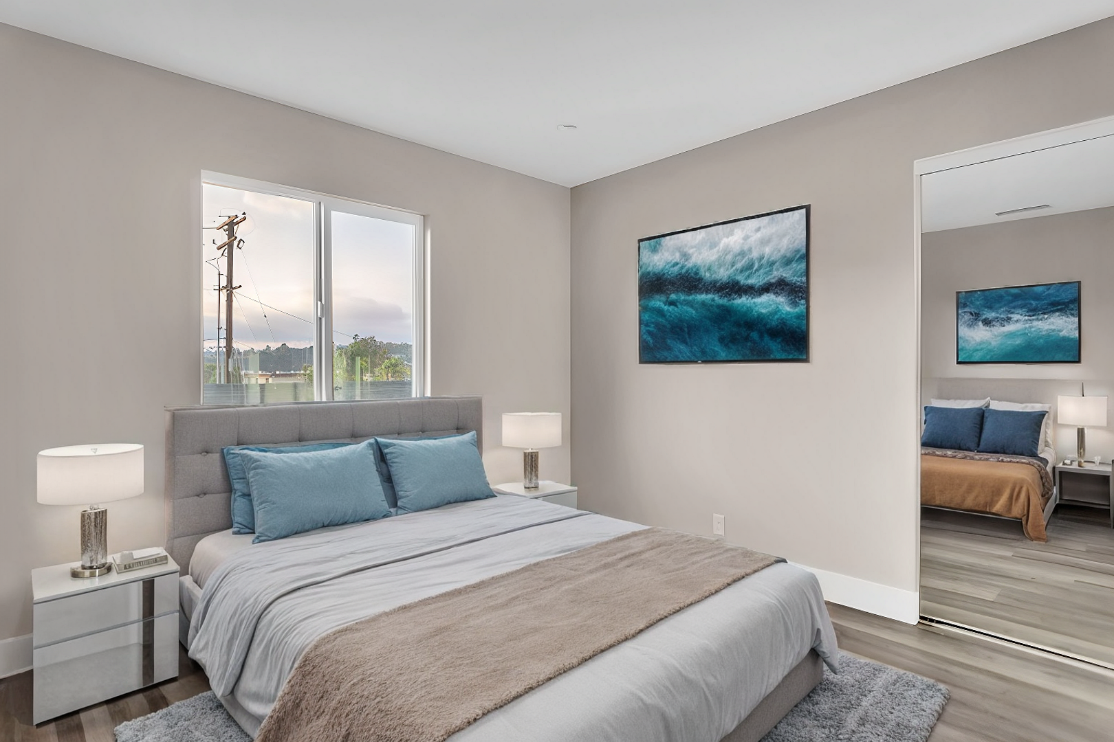 Step into a bright, open-concept living area that blends seamlessly with a modern kitchen, complete with quartz waterfall countertops, sleek European cabinets, and energy-efficient stainless-steel appliances. The home also includes 8mm LVP flooring throughout house, porcelain tiles in every bathroom, LED lighting, water conserving plumbing fixtures, and solar panels for lower utility costs.