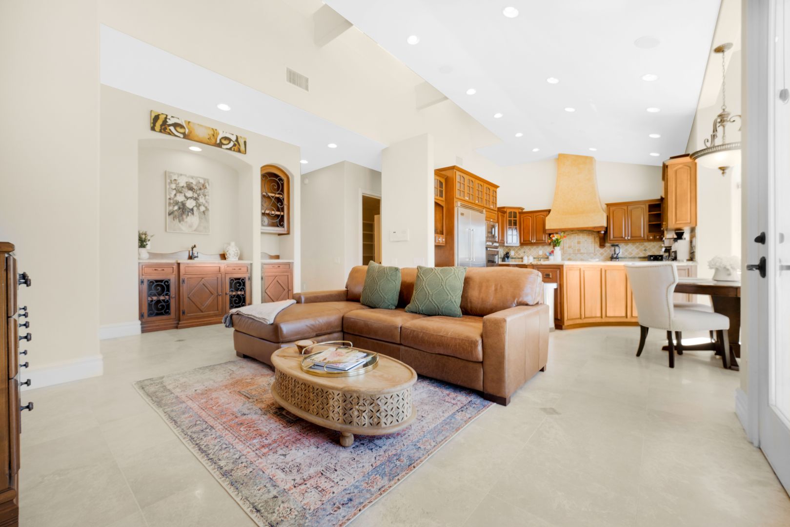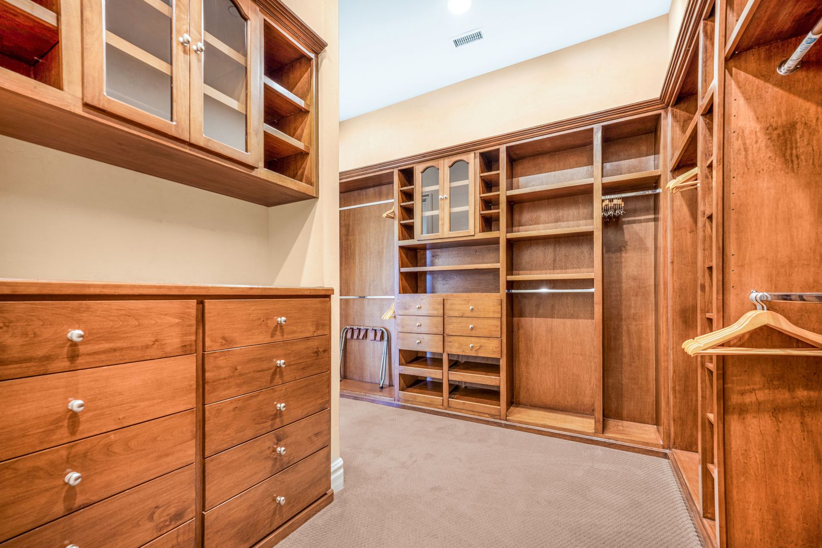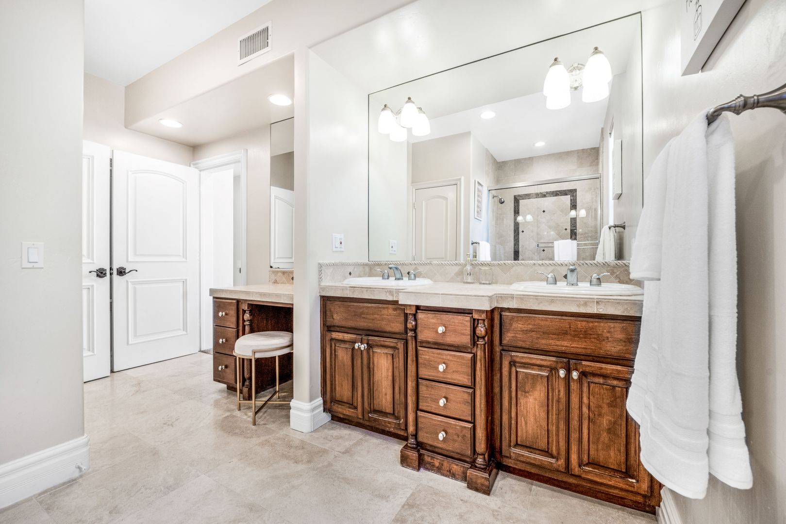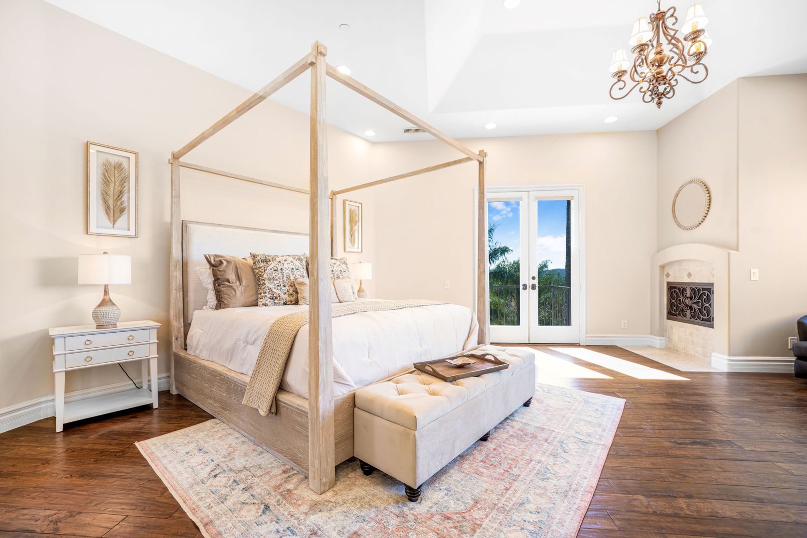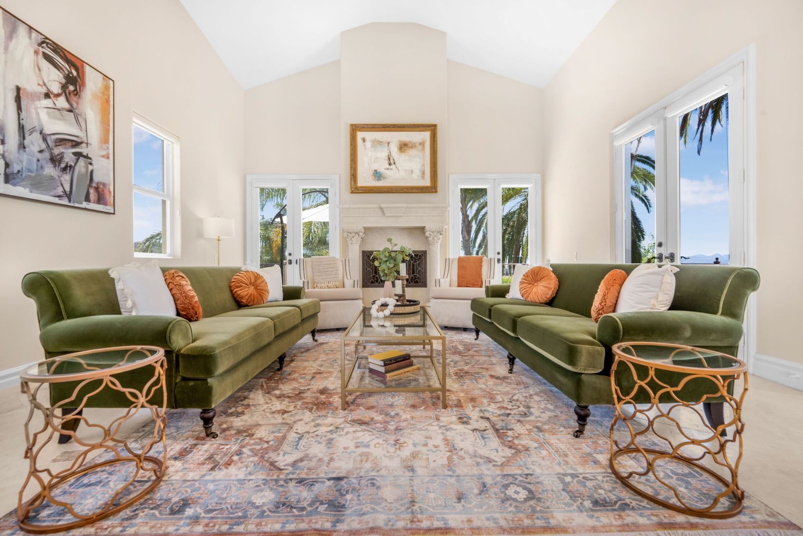 As you enter the 5062 square foot home you’ll be in awe of the high ceilings, the gorgeous columns and arches in the rotunda and the exquisite attention to detail throughout. Large east and west facing windows bring in generous natural light to enjoy the beautiful California sunshine. Just outside the living and family room is a spacious 1000 square foot balcony accessed by multiple sets of french doors to enjoy the views. The chef’s kitchen with stainless steel appliances features an extra-large fridge, double ovens perfect for creating large meals for party guests, an island in the center of the kitchen and serving counter just off the dining nook. You may choose to have an informal meal right there by the kitchen or take advantage of the beautiful 12 person dining table for a classy dinner just around the corner.