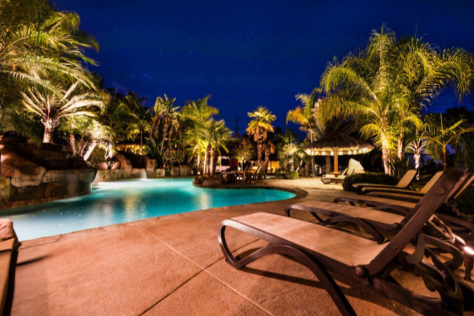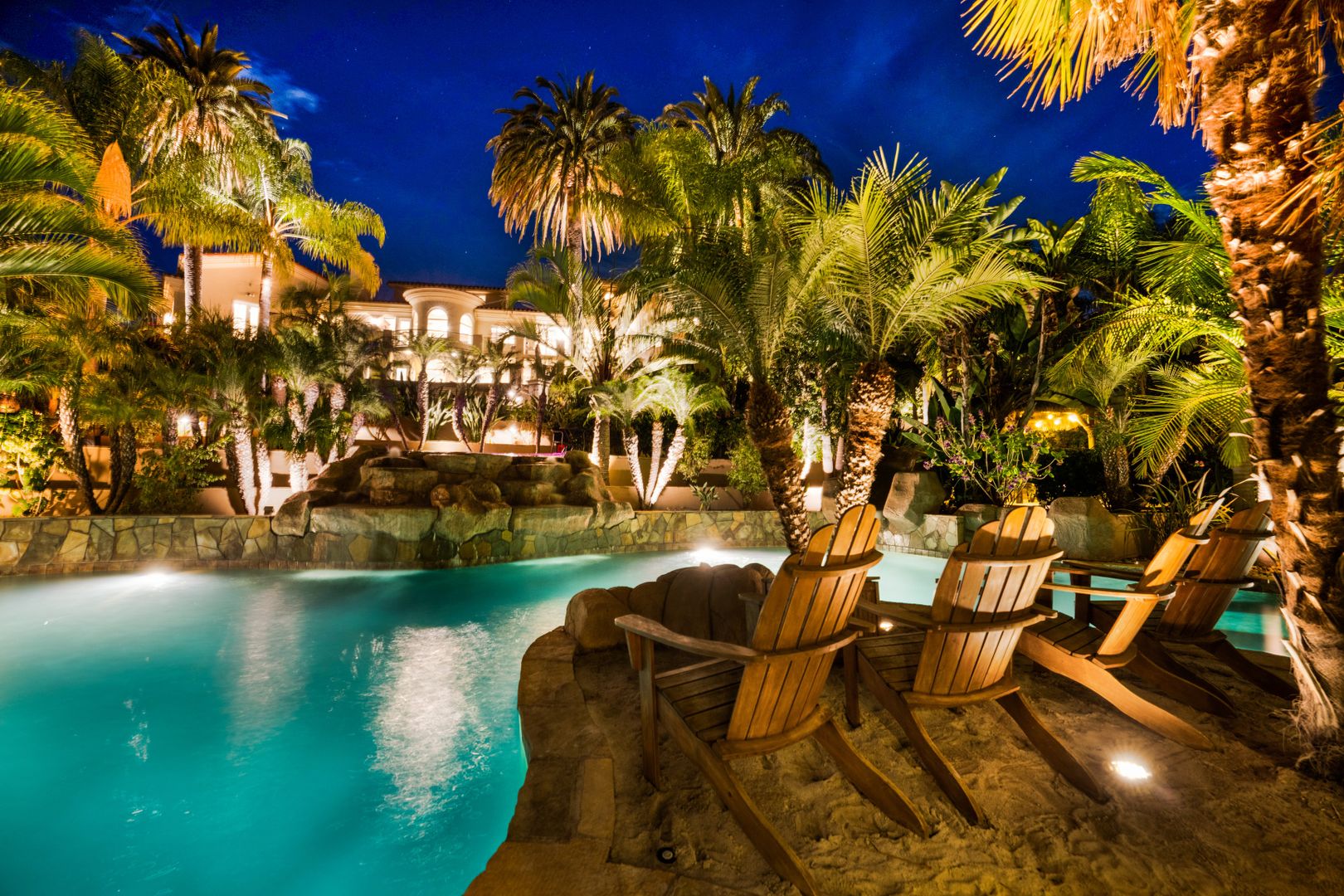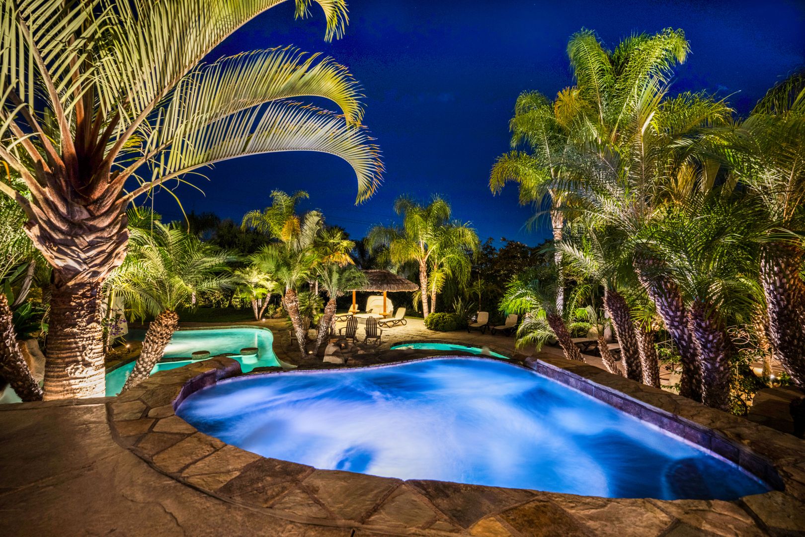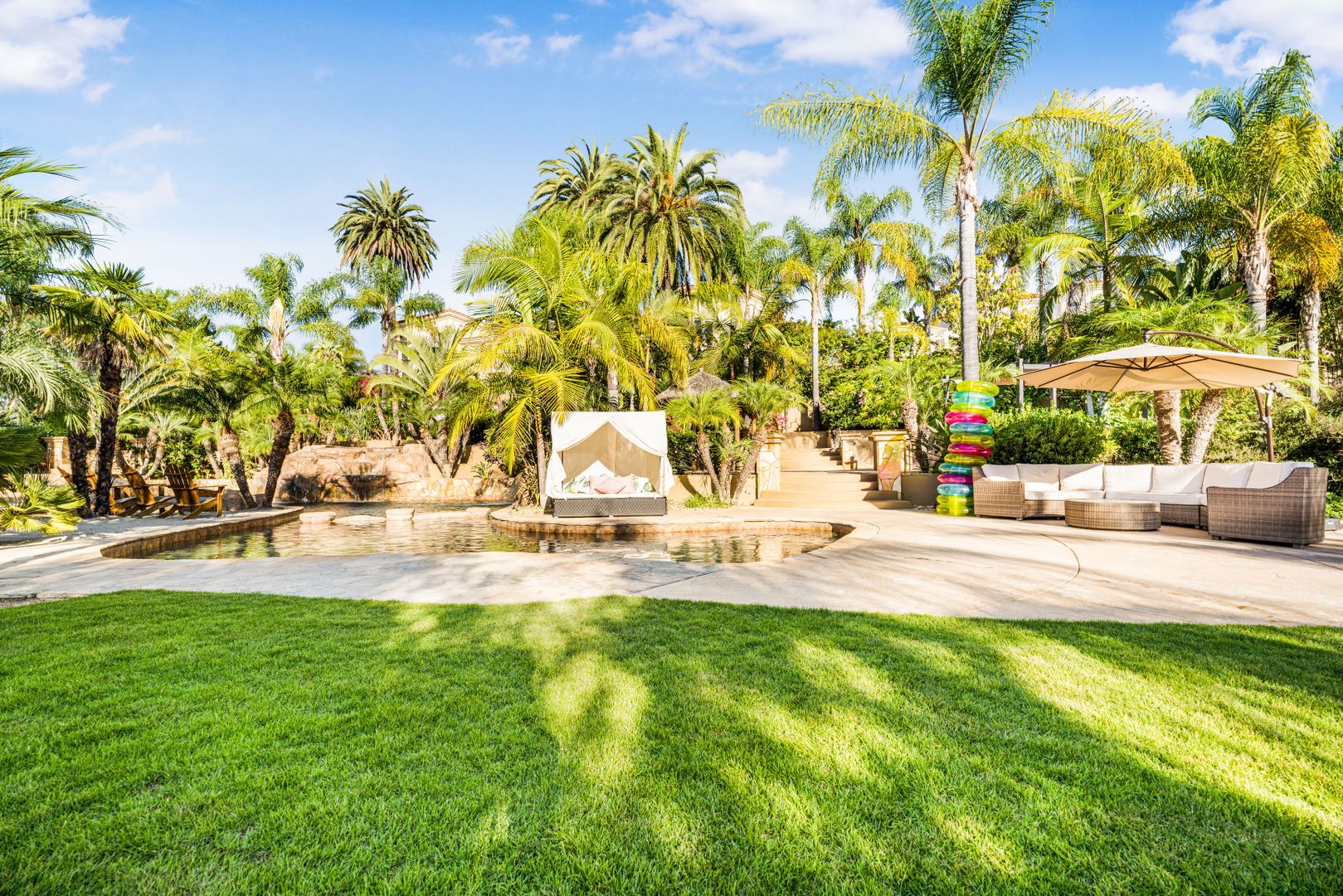 Welcome to your own private resort in a tropical paradise! Nestled just 30 minutes northeast of downtown San Diego and the San Diego airport and close to beach communities, Seaworld, the San Diego Zoo and Legoland you’ll find the idyllic community surrounding Lake Poway. Quiet and spacious, an architectural masterpiece sits on 1.3 acre grounds with hundreds of manicured trees, 30 foot palms, beautiful plants and flowers situated at the end of a cul-de-sac with sweeping views of Poway and beyond.