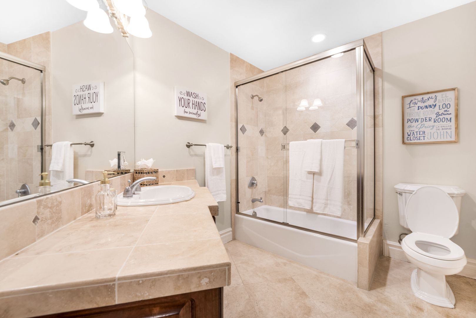 The 4 bedrooms + office and 5.5 bathrooms are all perfectly designed and stocked to suit your needs with comfortable beds, upscale linens and towels and abundant space to spread out and feel at home. Additional features include multiple flat screen TVs throughout, wet bar, laundry room, extensive closet space, large soaking tub, vanity in master bathroom plus a separate living area with bedroom and kitchenette for guests who would like more privacy.