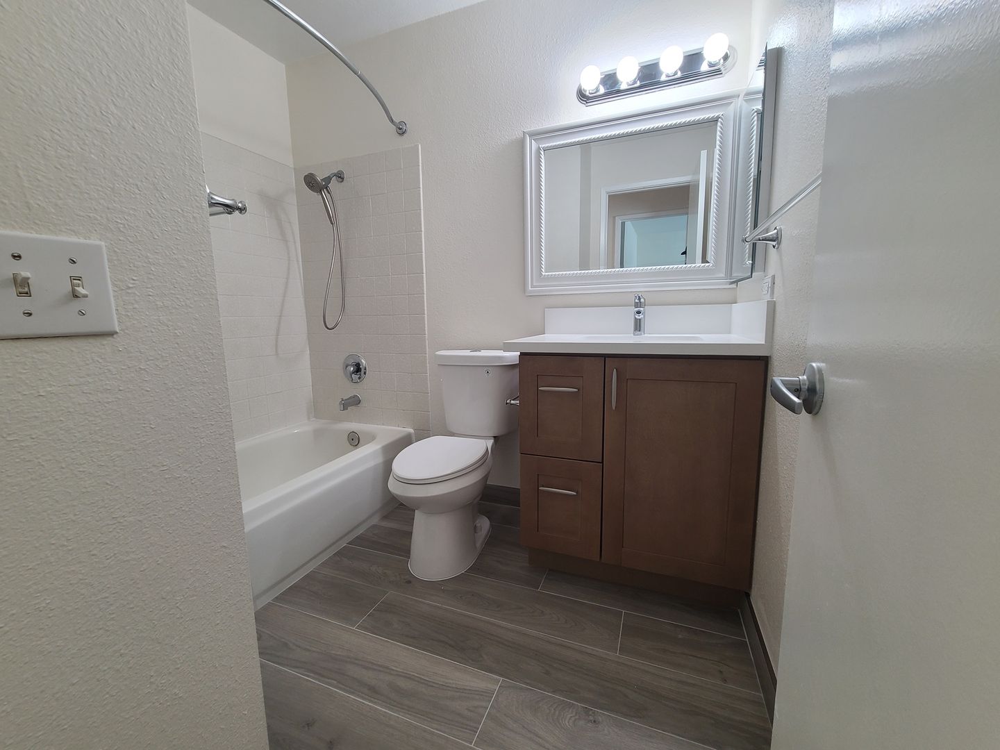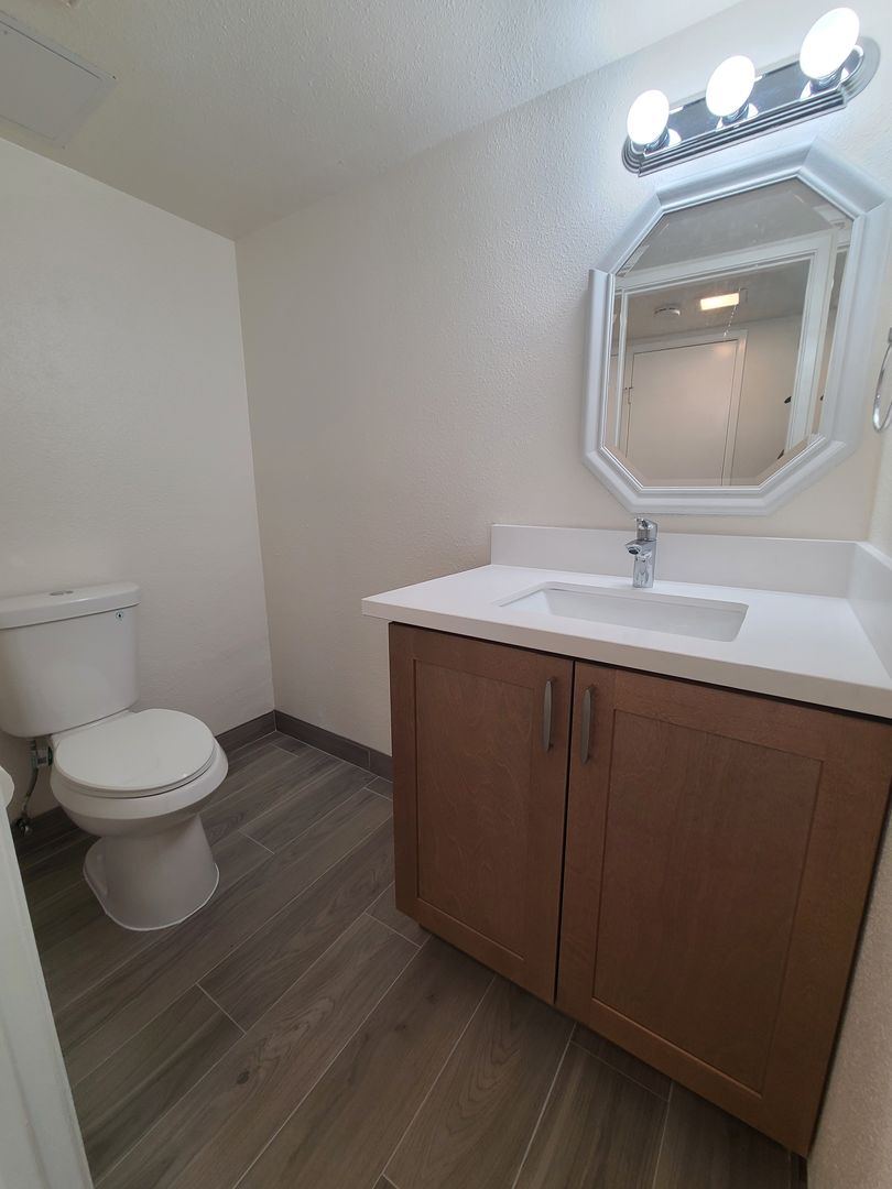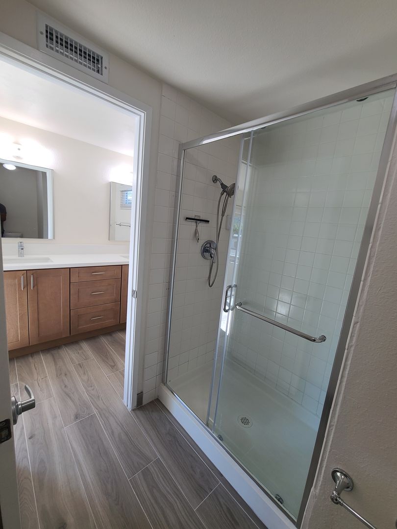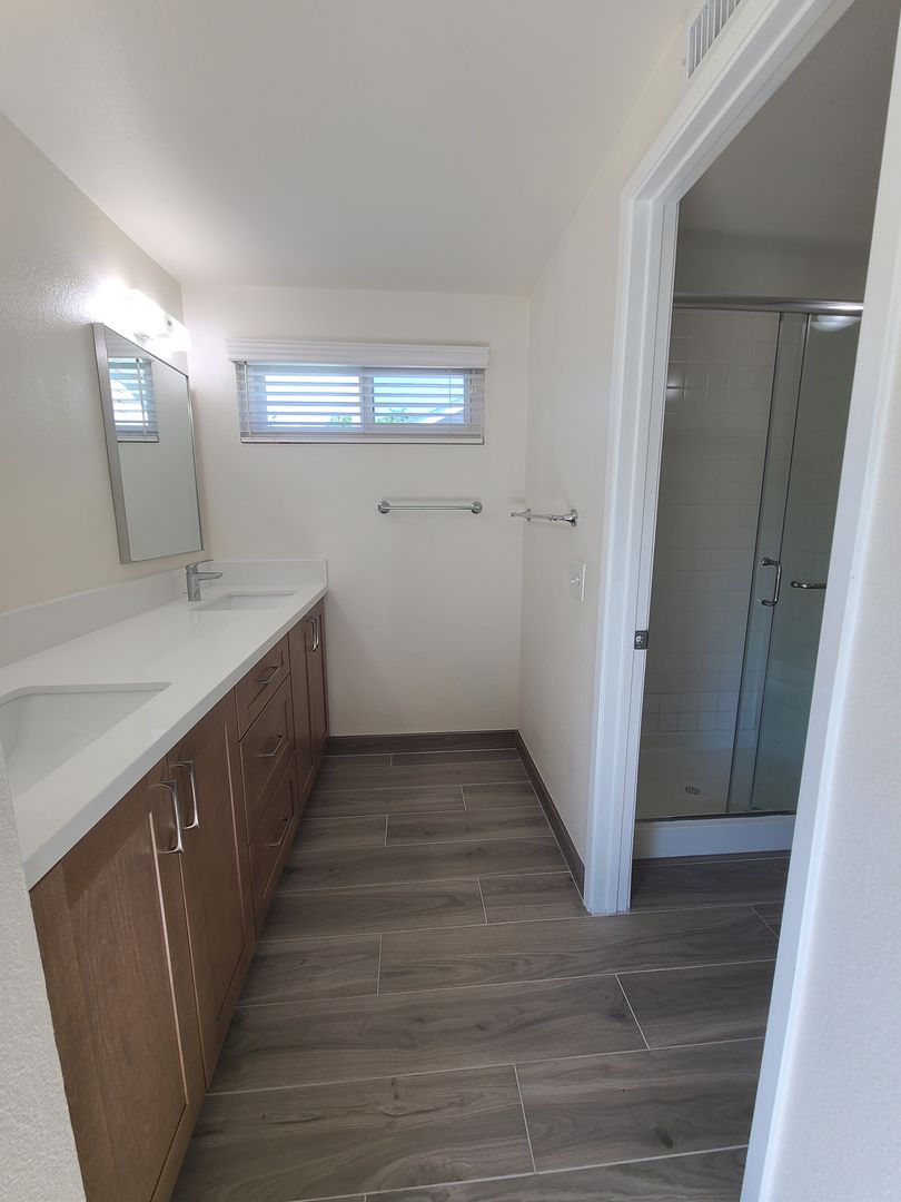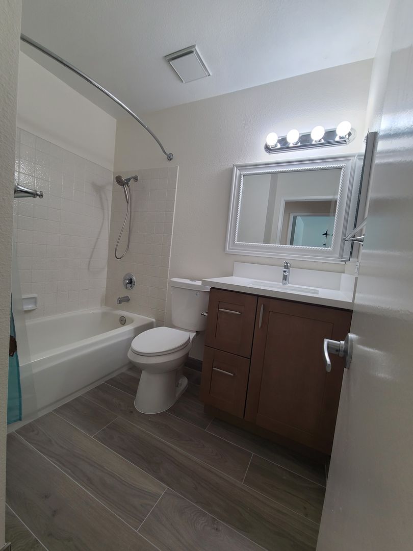 The full bathroom has been fully remodeled.