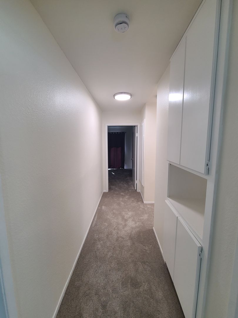Upstairs: All bedrooms are located in the upper level and have ceiling fans. The large Master bedroom with walk-in closet and remodeled bathroom offers new dual vanities, granite counter tops, and extra storage along with an outdoor deck/balcony with a parklike view. The 2nd and 3rd bedrooms are large and have great closet space.